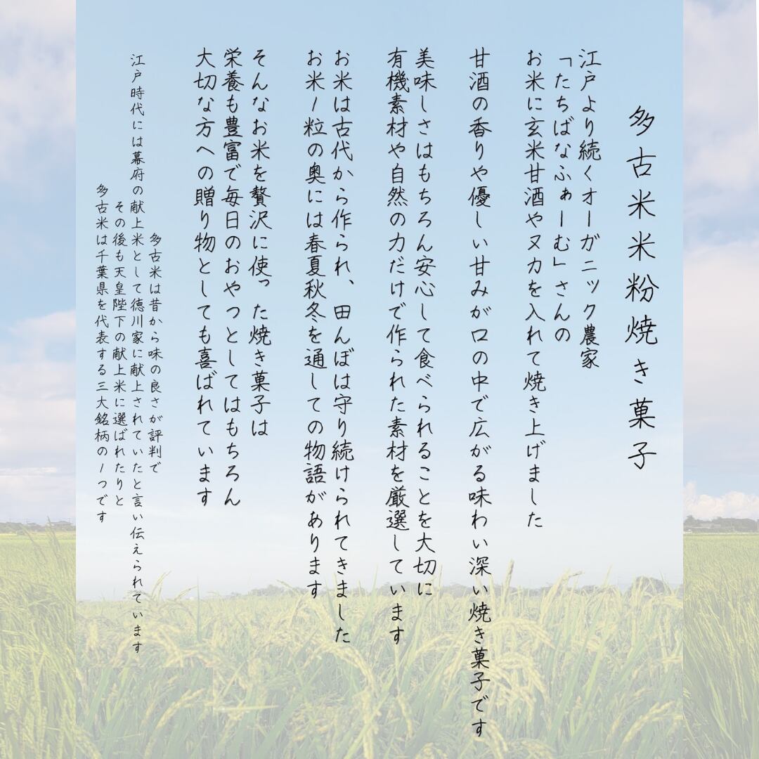有機素材や自然の力で育った食材をたっぷり使いココロもカラダも喜ぶ米粉焼き菓子 発酵食品の玄米甘酒や栄養たっぷりのヌカと多古米米粉で焼き上げました